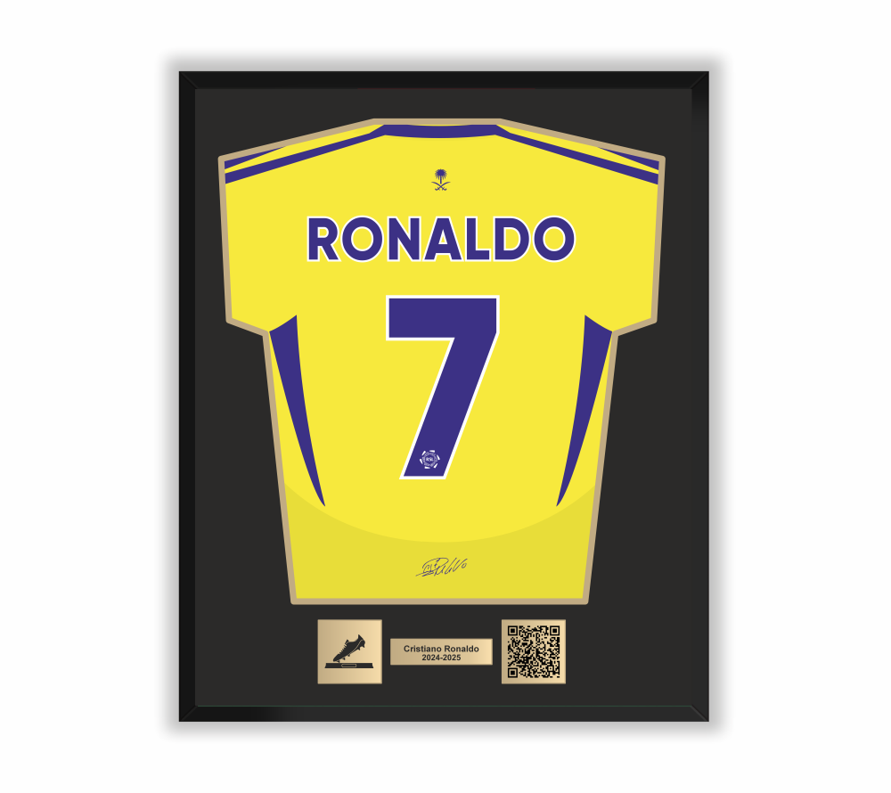 لوحة تذكارية فاخرة تُخلّد إنجاز كريستيانو رونالدو مع نادي النصر موسم 2024-2025، بتصميم أيقوني يعكس حبك لكرة القدم ويضيف لمسة فنية مميزة لمكانك.